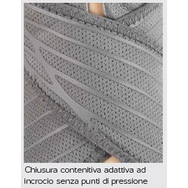 La tomaia si adatta alle diverse dimensioni del piede da accomodare; la sua speciale costruzione consente il contenimento del piede operato eliminando ogni punto di pressione; la stabilizzazione del calcagno è garantita dalla costruzione anatomica del prodotto evitando la rotazione del tallone durante la fase di contatto e mid stance.