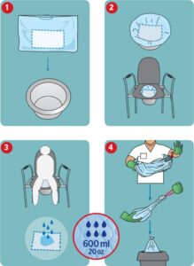 Comoda dalle dimensioni ridotte, utilizzabile come sedia a comoda, oppure, se le dimensioni della tazza WC e della stanza lo permettono, direttamente sul WC.