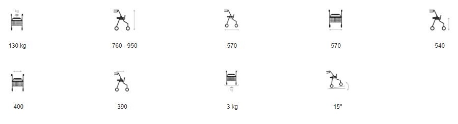 Deambulatore 2 ruote e 2 puntali con cuscino