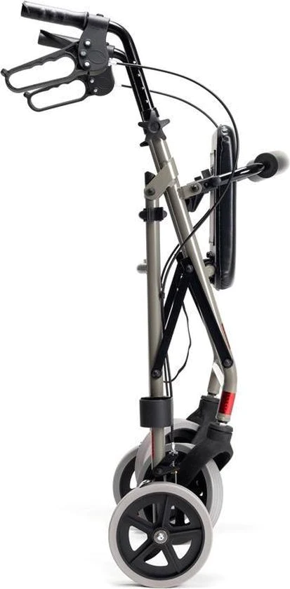 Deambulatore pieghevole con freni Eco-Light a 4 ruote, dotato di cestino removibile, cuscino imbottito e porta bastone.