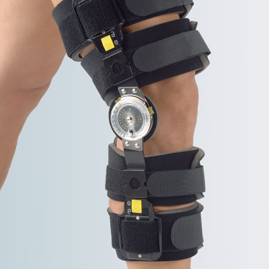Ginocchiera telescopica post-operatoria per la stabilizzazione, blocco e limitazione di movimento dell’articolazione del ginocchio.
