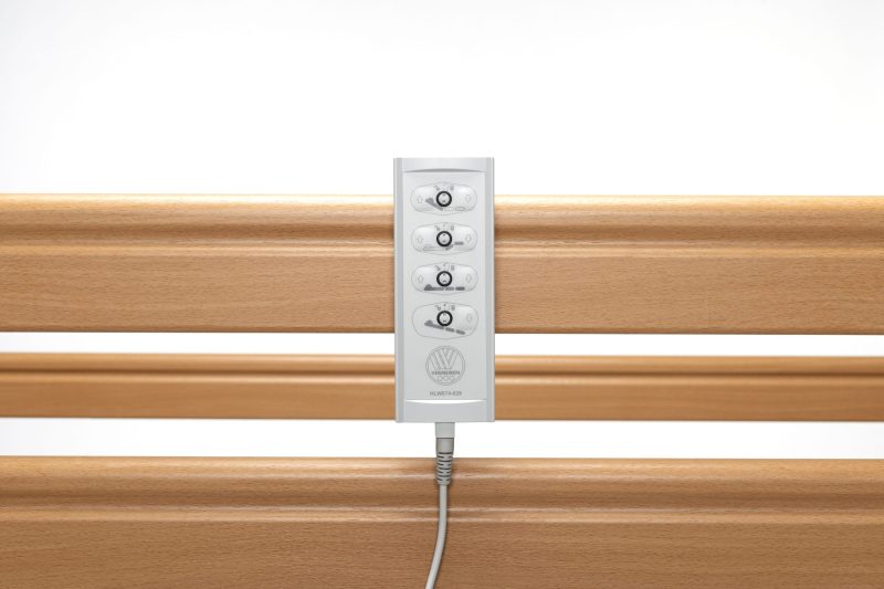 Il letto è regolabile elettricamente e dotato di serie di una funzione anti-Trendelemburg, per poter raggiungere la posizione ottimale e mantenere l’utente al sicuro. La regolazione elettrica dell’altezza favorisce e facilita gli spostamenti e le cure.
