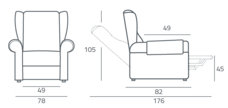 Poltrona elevabile realizzata con meccanismo motorizzato (1 o 2 motori). La struttura solida è assemblata con parti esterne e interne in agglomerato di legno (multistrato e massello di legno) ricoperta da poliuretano espanso indeformabile.