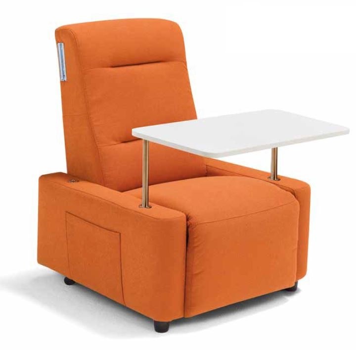 Completa di tavolino estraibile da intercambiare con i braccioli.