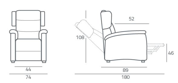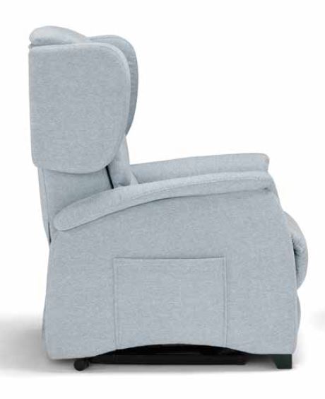 Poltrona elevabile realizzata con meccanismo motorizzato (1 o 2 motori). La struttura solida è assemblata con parti esterne e interne in agglomerato di legno (multistrato e massello di legno) ricoperta da poliuretano espanso indeformabile.