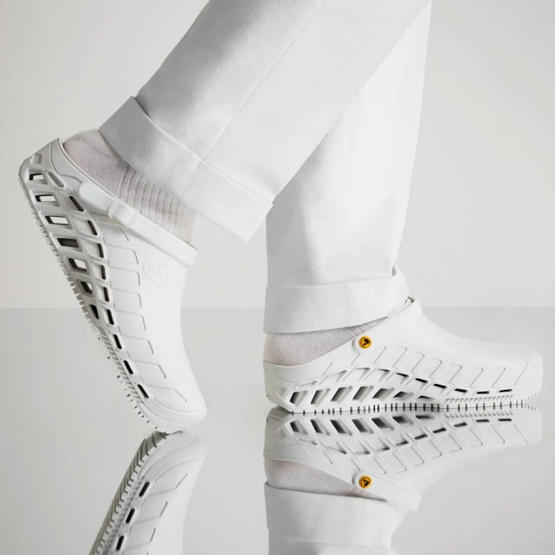 Il modello è autoclavabile, antistatico e resistente allo scivolamento, è indicato a personale medico, sanitario e a tutti i professionisti che trascorrono tutta la giornata in piedi.